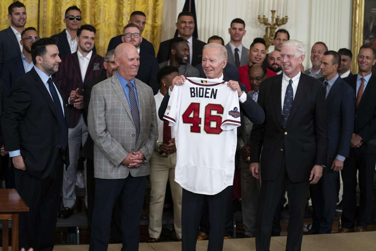 WASHINGTON (AP) — President Joe Biden said Monday the Atlanta Braves will be “forever known as the upset kings of October” for their improbable 2021 World Series win, as he welcomed the team to the White House for a victory celebration. Biden called the Braves’ drive an “unstoppable, joyful run.” The team got its White […]