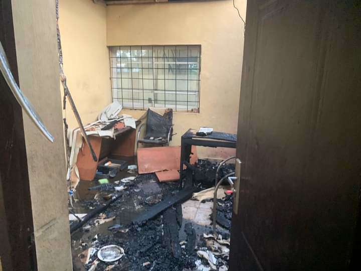 The hoodlums, numbering about eight, reportedly scaled the fence into the INEC compound and set the building on fire.
