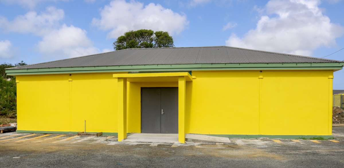 The new library features an ADA-compliant ramp, impact windows, 18-inch reinforced concrete masonry blocks, air conditioning, new electrical outlets, commercial-grade metal doors, new vinyl tiles and a vibrant yellow exterior and cream interior.