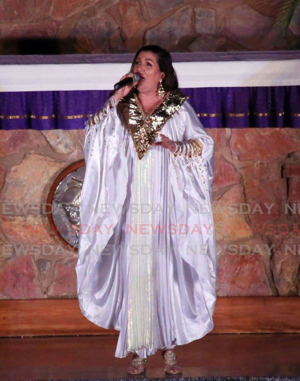 Stephenie Charles, then president of NWAC, 'offered her flowers,' which were in the form of a plaque and cheque, on January 19, 2015 during the 31st Annual Calypso Queen Competition at Queens Hall.