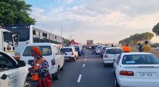 About 20 taxis have been used to block a section of Cape Town's Jakes Gerwel Drive , causing severe congestion, the City's Traffic Services says.