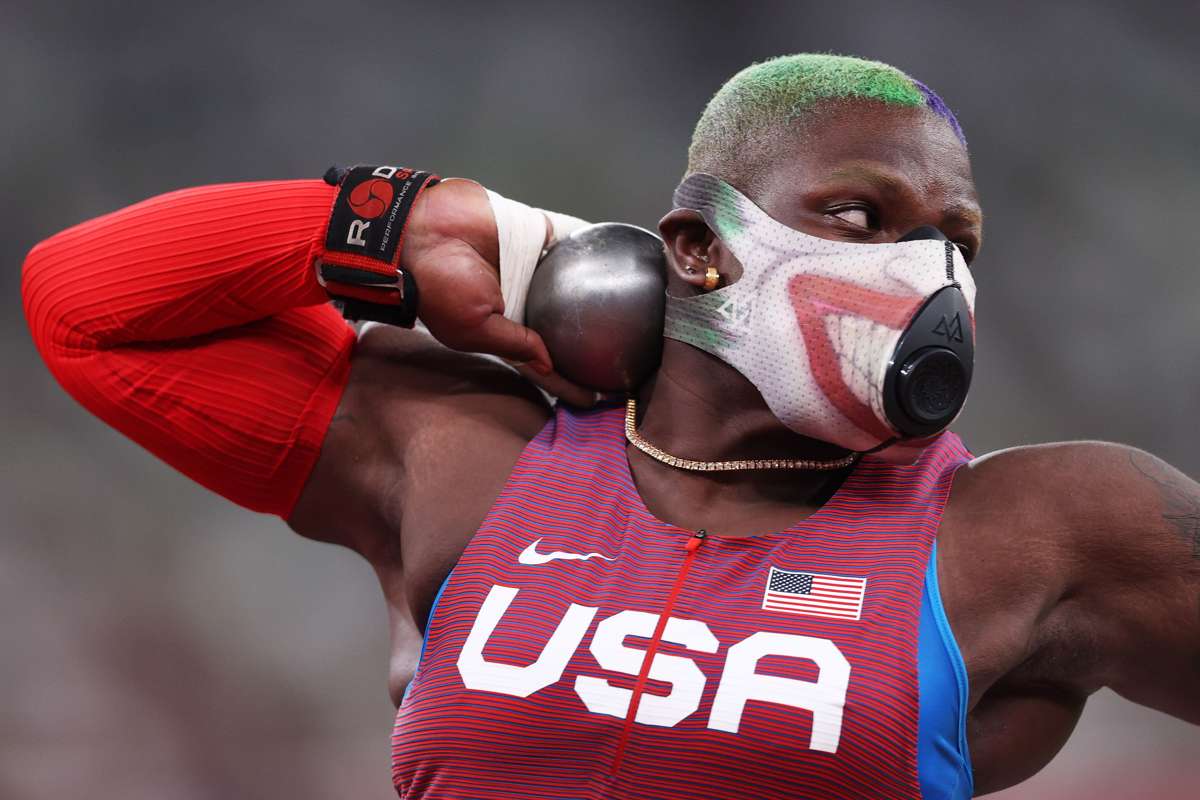 Raven Saunders is wearing one attention-grabbing garment in Tokyo.